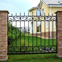 Неразумно ставить дешевые ограды, чтобы сэкономить на капитальном металлическом заборе. Он был, остается и будет самым красивым и эстетичным вариантом. Да, сейчас существует множество других бюджетных решений, декоративно имитирующих дорогостоящие материалы, но уникальному и качественному кованому забору они не могут стать конкурентами. Именно такая ограда лучше всего дает понять о высоком статусе владельца. Вы можете сами легко заметить, что подавляющее большинство домов респектабельных людей имеют ограждения и ворота такого типа.
